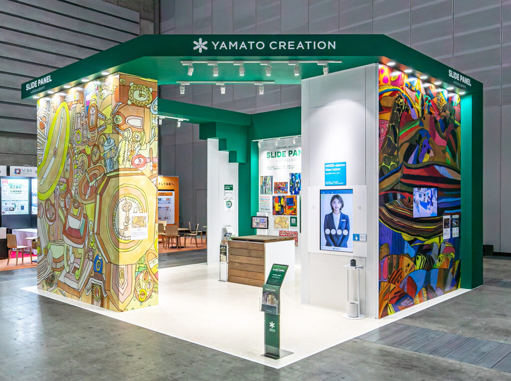 弊社ブースでは、環境配慮型工事用仮囲い「スライドパネル」を中心に、【 アート × AI × サステナビリティ 】 をテーマとした展示を行いました。
